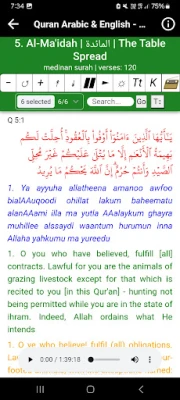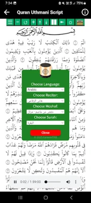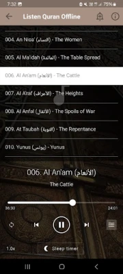 Hani Ar Rifai full Quran offline app yana ɗauke da tsarin sauraro da karatu mai basira a shafi ɗaya, yana ba ka damar dakatar da karatu, nazarin ayoyi a rubuce, ko canza saurin sautin, duk ba tare da buƙatar canza shafi ba. Kwarewar sauraro ta ƙunshi raye-raye masu launi da ke nunawa lokacin da sautin Alkur'ani ke gudana, tabbatar da cewa ko da an rage ƙarar wayar, za ka san karatun yana gudana. Bugu da ƙari, akwai fasalin kashe sauti ta atomatik (sleep timer) wanda za ka iya tsara lokacin da kake so, kuma karatun zai tsaya da kansa. Hakanan, za ka iya saita kowace sura a matsayin ringin wayarka, faɗakarwa, ko ƙararrawar farkawa. Don sanin tarihin mai karatu, akwai tarihin Sheikh Hani Ar-Rifai daki-daki a harshen Larabci da Ingilishi, wanda ke nuna zurfin iliminsa da gudunmawarsa ga Musulunci.
