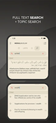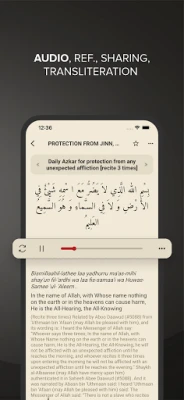 Haka kuma, an tanadi damar raba rubutun addu'a ko sautin ta tare da 'yan uwa da abokai. Sashin bincike mai zurfi zai baka damar nemo kowace addu'a cikin sauƙi, ko da kuwa ta hanyar taken ta ne, fassarar ta, ko ma ta rubutun ta na sauti. Kowane zikiri da addu'a tana da tushen ta bayyananne. Zaka iya ajiye addu'o'in da kake yawan karantawa ko waɗanda kake so a sashin ajiyar kayan da kake so (favorites) domin samun su da sauri. Manhajar ta kuma ƙunshi wani sashe na musamman don umra, inda aka tsara addu'o'in ta mataki-mataki. Banda haka, akwai Sunaye 99 na Allah (SWT) da kuma ƙarin karatu masu ilmantarwa don zurfafa fahimtar addini, suna jiran ka gano su.