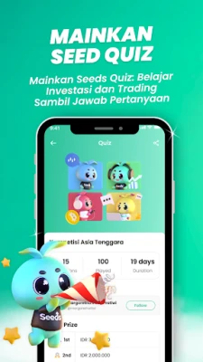 Bayan koyon aiki, Seeds Finance yana ƙarfafa ka da ka gwada ƙwarewarka ta hanyar tambayoyin kuɗi masu jan hankali. Waɗannan tambayoyi an tsara su ne don tantance fahimtarka game da harkokin kuɗi da zuba jari, inda kake samun maki da hawa kan teburin jagororin don buɗe kyaututtuka na gaske. Bugu da ƙari, shiga gasar zuba jari mai zafi, inda za ka iya nuna fasaharka wajen gudanar da manyan fayiloli na zahiri. Kowane gasa yana ba ka damar cin nasarar miliyoyin kyaututtuka na gaske, yayin da kake zurfafa saninka game da kasuwar hannayen jari da kuma dafatar kanka don nasarar gaskiya.