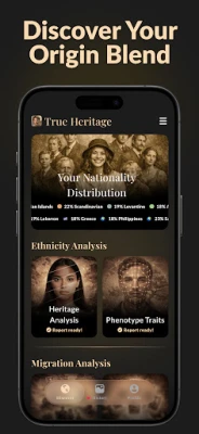 Amma hoton farko ne kawai. Shine hanyarka ta shiga cikin cikakken Rahoton Asali, wani zurfafa bincike cikin abubuwan da suka bayyana gadonka. Da farko, gano ainihin asalin ƙasarka tare da cikakken bayani, bisa kashi-kashi, na inda ka fito. Wuce nahiya, ka ga takamaiman haɗin al'adun da suka samar da keɓantaccen halinka. Daga nan, True True Heritage & Ancestry: EDNA yana bayyana labarin su. Koyi game da takamaiman birnin da kakanninka suka kira gida, sana'ar gaskiya da suka sadaukar da rayuwarsu ga ita, har ma da abincin tarihi da ya tallafa musu.